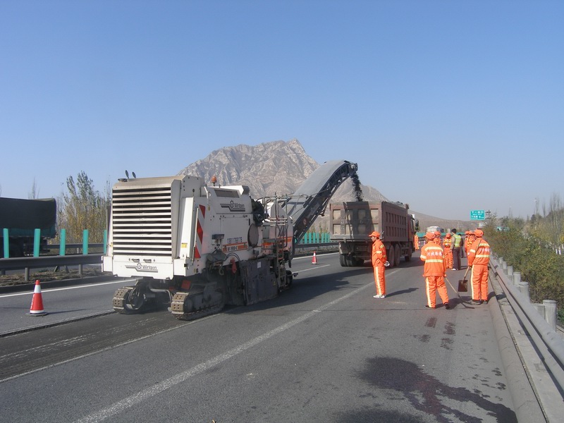 上午10點20分,在張家口方向K121+670~K121+780路段,施工單位按照既定的養(yǎng)護工程交通管制方案,對試驗段的行車道和緊急停車帶部分先做好了隔離封閉,各崗位施工人員和銑刨機、壓路機、自卸汽車、灑水車等配套的機械設備全部到場就位。公司路面專項工程部與本項工程的監(jiān)理、設計單位同時到達現場進行監(jiān)督檢查。