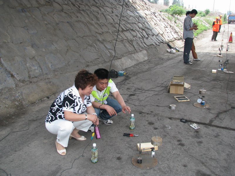 由于荷載試驗(yàn)必須用標(biāo)準(zhǔn)重量的汽車(chē)進(jìn)行加載才能測(cè)得詳細(xì)準(zhǔn)確的數(shù)據(jù),需在檢測(cè)期間斷交。為此公司與下花園交通局、交警隊(duì)聯(lián)系溝通,得到他們的大力配合,檢測(cè)時(shí)間安排在車(chē)流量較小的中午進(jìn)行。