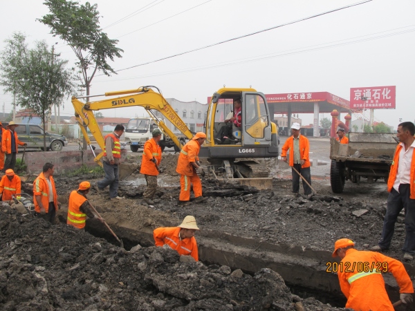為確保行車安全,公司委托懷來縣交通局公路管理站對以上三座病害橋梁進行處治,處治方案為:k112430、k108090兩座小橋,挖除與路面接頭處破損水泥混凝土,重新攤鋪瀝青混凝土;k99720涵洞已經(jīng)廢棄,采取挖除橋面鋪裝和梁板,回填碎石和貧混凝土,處理基層后攤鋪瀝青混凝土的處治方案。處治面積共計244平米。該工程629開工,預計73完工。(工程養(yǎng)護部)
